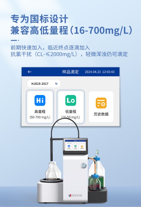LH-JA100采用光學(xué)顏色識(shí)別原理,專為CODcr國標(biāo)法優(yōu)化設(shè)計(jì),可自動(dòng)完成滴定全流程: